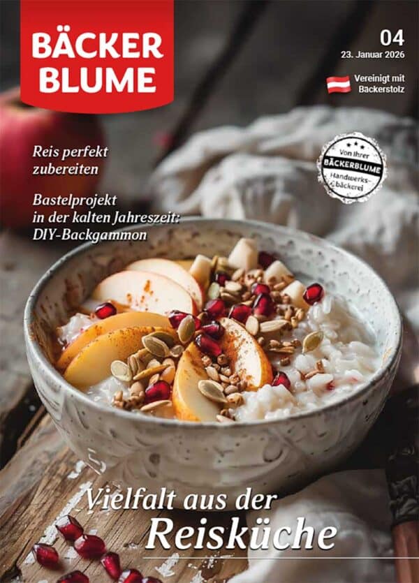 BÄCKERBLUME, das wöchentlich erscheinende Kundenmagazin des Deutschen Bäckerhandwerks bietet den Lesern interessante Ernährungstips rund um das Thema Brot und Backwaren sowie jede Menge interessante und saisonale Rezeptideen. Sie erhalten die BÄCKERBLUME ausschließlich bei ausgesuchten Handwerks-Bäckereien. Falls die BÄCKERBLUME bei Ihrem Bäcker vergriffen sein sollte, können Sie hier die aktuelle Ausgabe als ePaper online lesen. Themen in dieser Ausgabe: