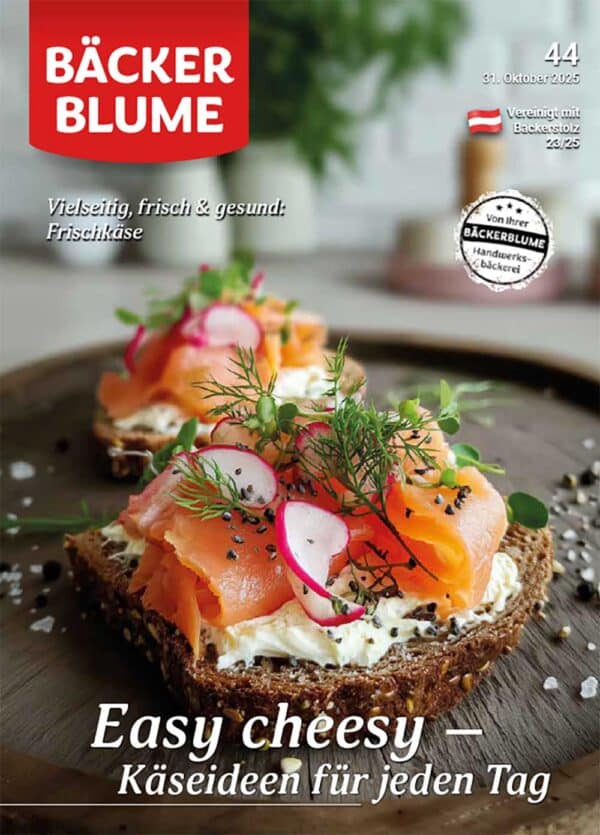 Lesen Sie die BÄCKERBLUME als ePaper. In dieser Ausgabe im Fokus: Easy cheesy – Käseideen für jeden Tag und Vielseitig, frisch & gesund: Frischkäse