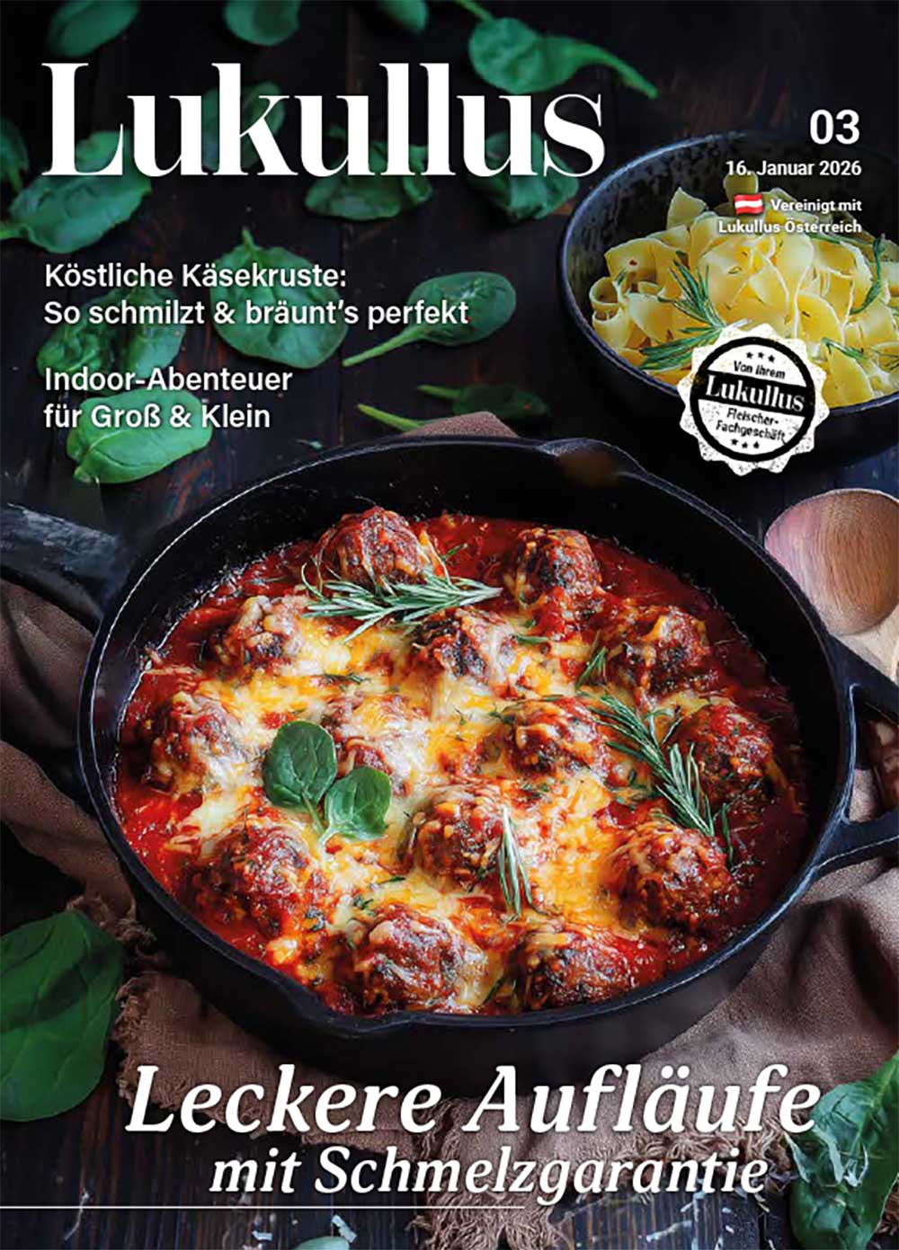 Lesen Sie Lukullus als ePaper. In dieser Ausgabe im Fokus: Aufläufe mit Schmelzgarantie und Köstliche Käsekruste: So schmilzt & bräunt’s perfekt