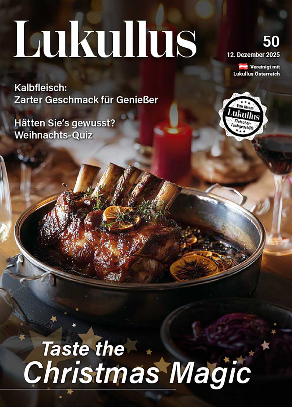 Lesen Sie Lukullus als ePaper. In dieser Ausgabe im Fokus: Taste the Christmas Magic und Zarter Geschmack für Genießer: Kalbfleisch.